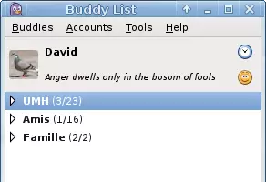 This Pidgin plugin adds a toolbar to the buddy list to quickly update nickname, personal message, icon, status and mood. It also allows updating the current song and other parameters which are updated globally on all accounts that support them. It is distributed under the terms of the GNU General Public License version 3.